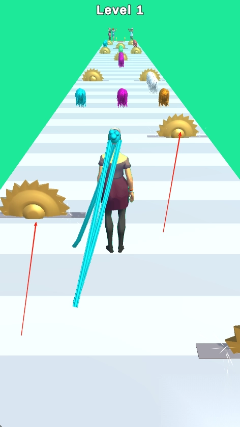 成功到达每一关的终点后,系统会依据头发的长度和通关所用的时间来计算积分。这些积分能用于竞技PK模式,让你和其他玩家一较高下,还能解锁更多不同的角色外观以及主题赛道。