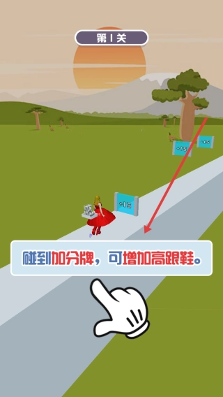 在关卡里,你需要操控角色进行移动,一旦碰到加分牌,就能增加高跟鞋的数量,而这些高跟鞋在之后的操作过程中会发挥关键作用。