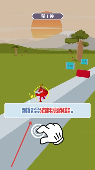 点击屏幕就能让角色完成跳跃动作,不过要留意的是,每次跳跃都会消耗一定数量的高跟鞋。所以你得合理安排跳跃的时机和次数,防止高跟鞋被过早耗尽。