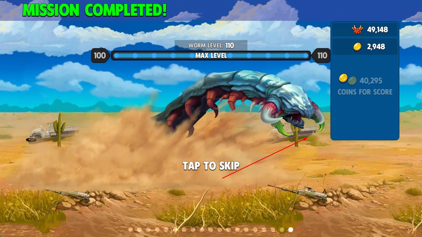 完成所有关卡的挑战,把蠕虫升级到最高等级,解锁全部种类的蠕虫,抵挡军队和外星人的攻击,在生存模式里刷新高分,成为最厉害的蠕虫。
