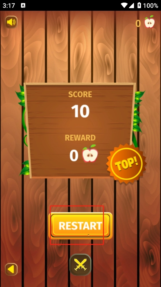 游戏结算界面会展示本局的分数,点击红框里的黄色RESTART按钮就能重新发起挑战,争取突破当前的得分记录。