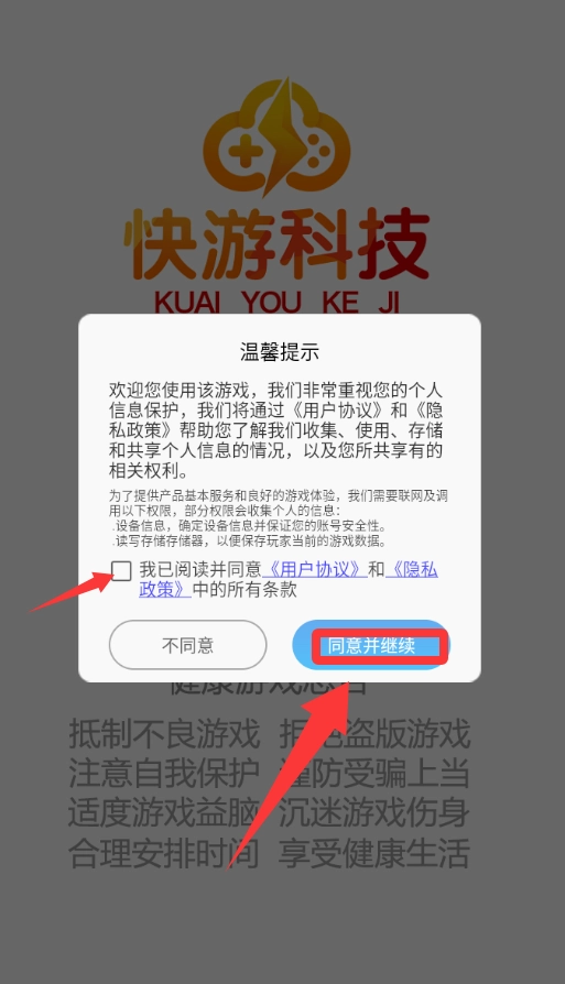 点击温馨提示的同意并继续然后打√进入。