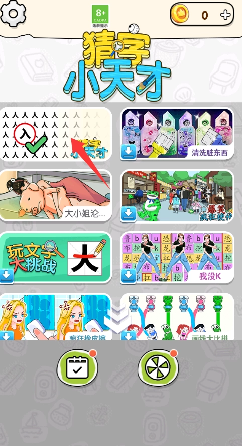 进入游戏有8个模式,选择猜字小天才模式。