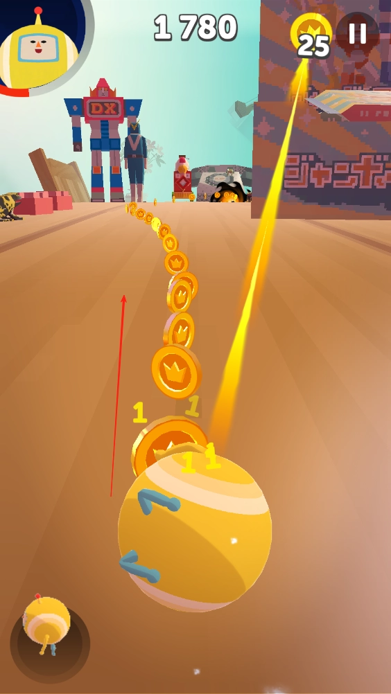 收集的过程中会遇到其他小伙伴,只要轻轻触碰他们,就能暂时变身为那个小伙伴的样子,与此同时地面上会冒出不少金币,沿着道路一路收集这些金币就可以了。