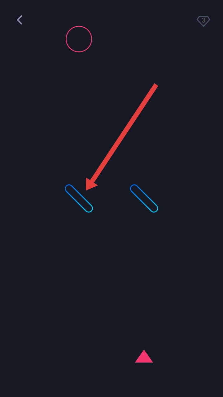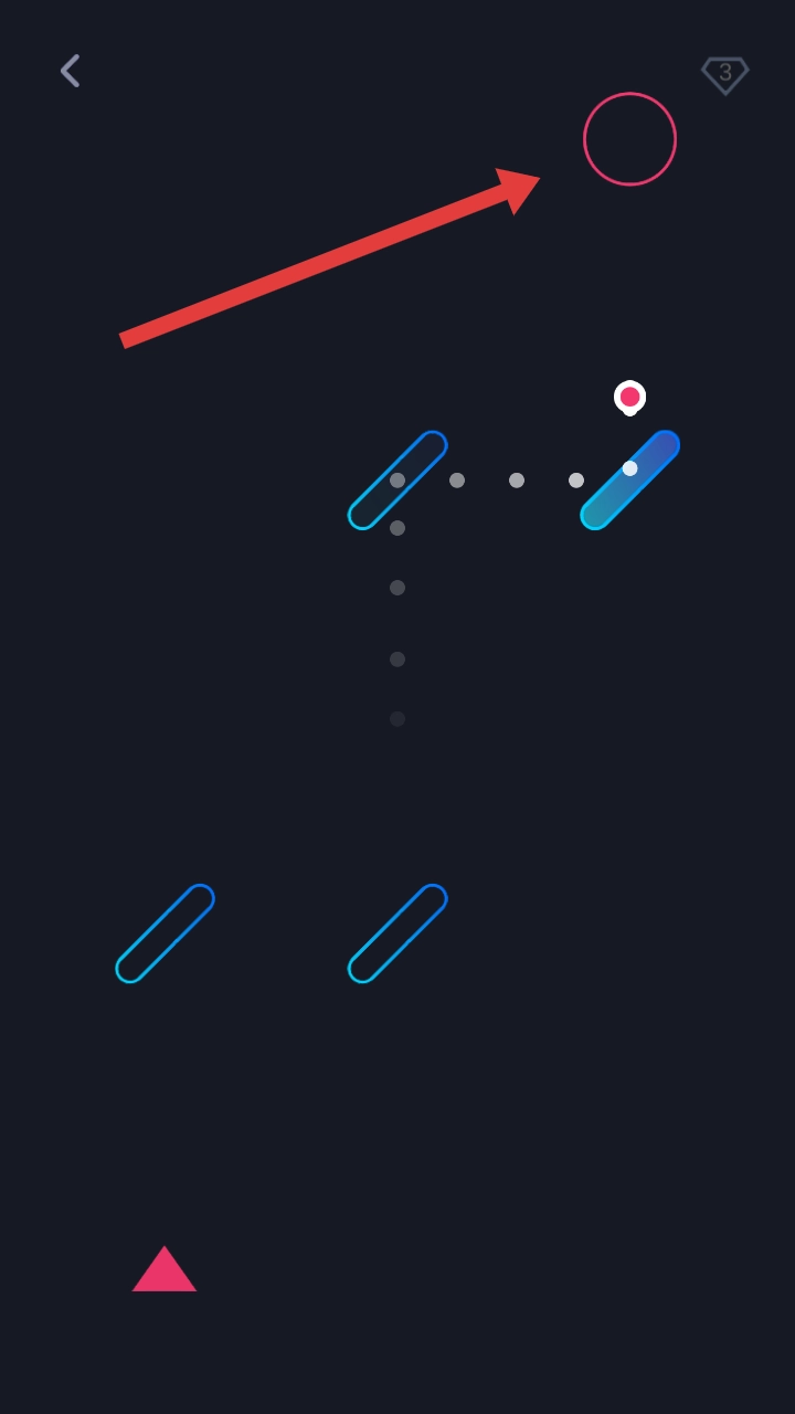 通过手动调节挡板,让弹球顺着虚线轨迹回弹,准确落入右上角粉色圆环样式的洞里,即可通关。