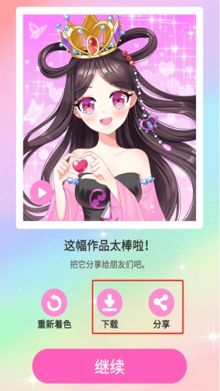 社交分享功能:玩家可将自己的作品一键分享到社交平台,参与“公主配色大赛”等相关活动,和其他玩家交流创作心得,从而提升游戏的互动性。