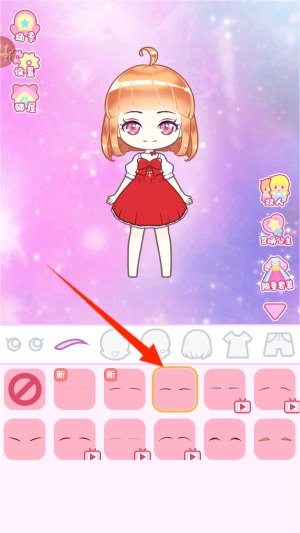 可以通过侧边菜单切换不同的脸型与眉形搭配,并且能够调整五官的比例。