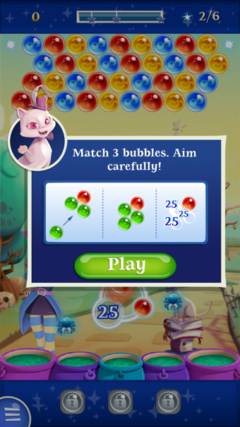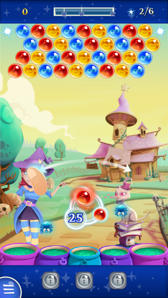 泡泡女巫传说2 Bubble Witch Saga 2是一款消除类的游戏,泡泡女巫传说2安卓版的玩法是根据泡泡的颜色射出去,如果有三个颜色一样的泡泡,则会消失,消除的泡泡越多,得分就越高。