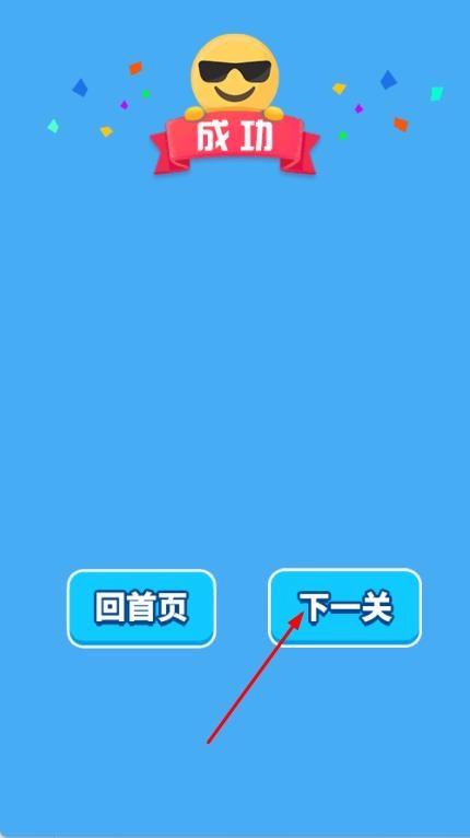 完成关卡任务后,系统会展示成功界面,你可以点击“下一关卡”继续挑战,也可以选择返回首页重新开始游戏。