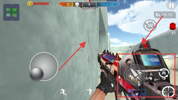 进入游戏对战场景后,可通过左侧的移动摇杆操控角色移动,右侧按键则用于执行射击、换弹等动作,同时需留意上方显示的时间与剩余敌人数量。