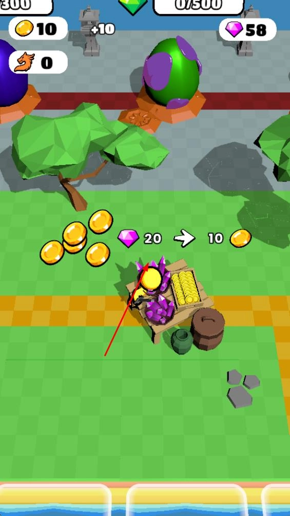 当你遇到摆放着金币和宝石的摊位时,走近它就能开展兑换操作,以此获得金币之类的物品,从而增加自身的资源存储量。