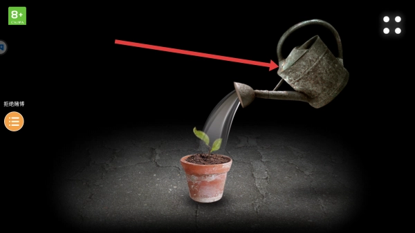 植物发芽后,要留意它的生长情况。要是叶片看起来缺水了,就点击右边的水壶图标给它浇水;要是需要补充养分,就点左边的药剂瓶来施肥。