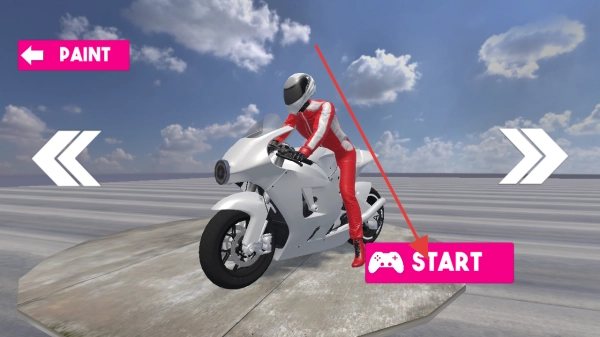 在游戏的启动界面,点击START按钮后,即可进入摩托车驾驶游戏环节,开启这段驾驶挑战的旅程。