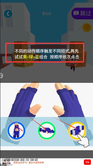每次点击三个动作都会触发一次忍术攻击,从而击败敌人。
