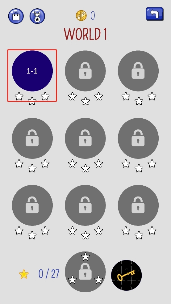 在正式开始玩游戏前,我们先把游戏的操作熟悉一下,之后点击屏幕上的第一关按钮,就能开启游戏游玩了。