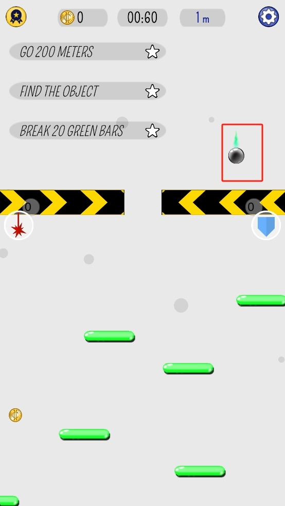 操控带有火焰的黑色小球,借助跳跃踩踏绿色横条来完成左上角的任务,同时向目标方向推进,还要留意搜寻场景里的目标物体。