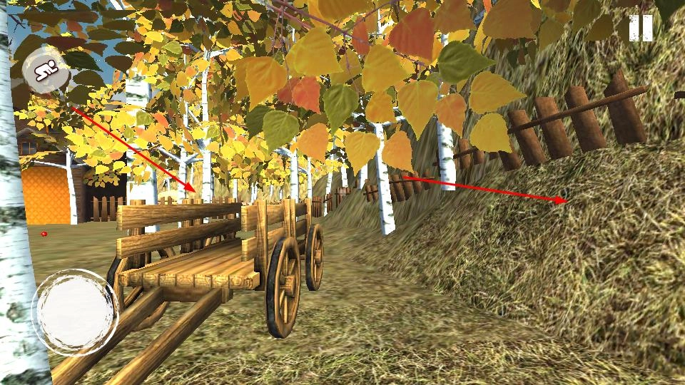 在游戏里通过虚拟摇杆进行操控,在户外场景移动时要留意箭头的指引,去探索木屋、树林这类区域,找寻能够帮助逃离的线索并躲避危险。