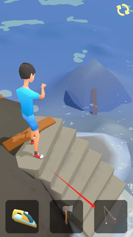 根据场景需求,点击下方的鱼竿图标,借助鱼竿完成解谜以推进游戏进程,点击使用钓鱼竿。