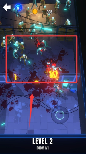 进入游戏选择关卡后即可进入战场,系统会自动协助攻击敌人,你只需操控角色移动,通过合理走位才能更有效地生存下来。