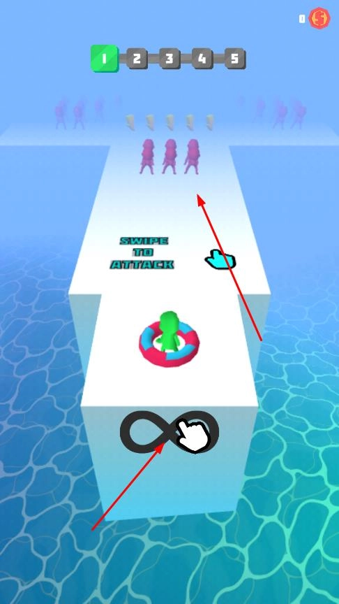 进入界面后,上方会显示当前关卡,点击提示“SWIPE TO ATTACK”即可开始游戏,通过滑动屏幕来操控角色发起攻击。