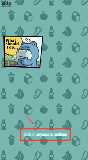 点击画面任意区域继续,查看蓝色熊的困惑表情。