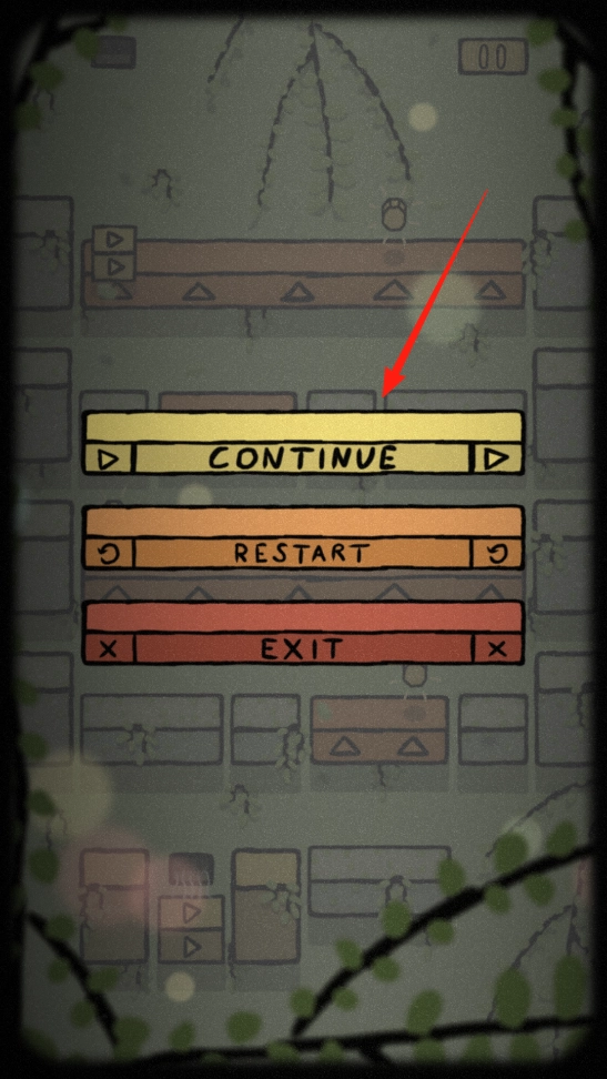 完成当前关卡的部分内容后,界面会弹出选项。点击CONTINUE可继续推进关卡进度,也可选择其他按钮来重启或退出。通过选择延续冒险或调整游戏状态,能够体验关卡之间的衔接机制。