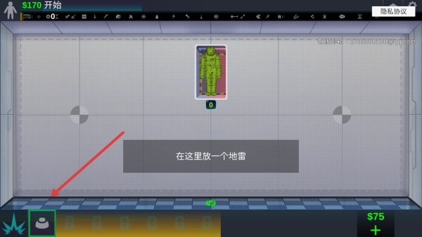 进入关卡后,按照“在此处放置一枚地雷”的提示,点击左下角的地雷图标,把地雷放到指定区域即可完成布置。