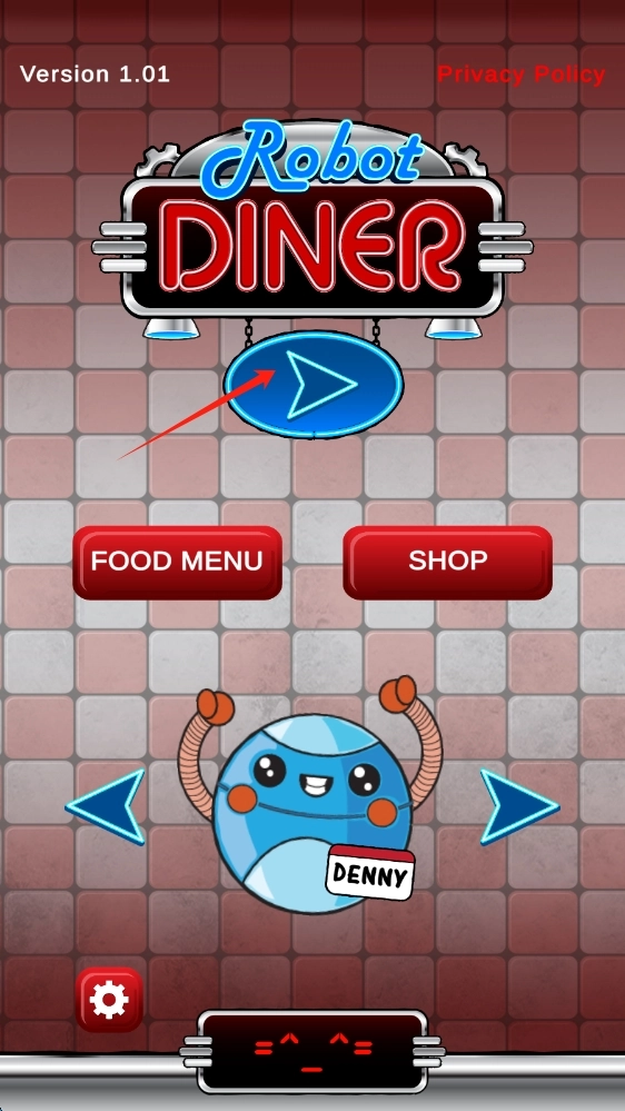 在Robot-Diner游戏的启动界面,按照箭头的指引,点击开始按钮,就能开启机器人餐厅的冒险之旅啦,现在就点击开始吧。