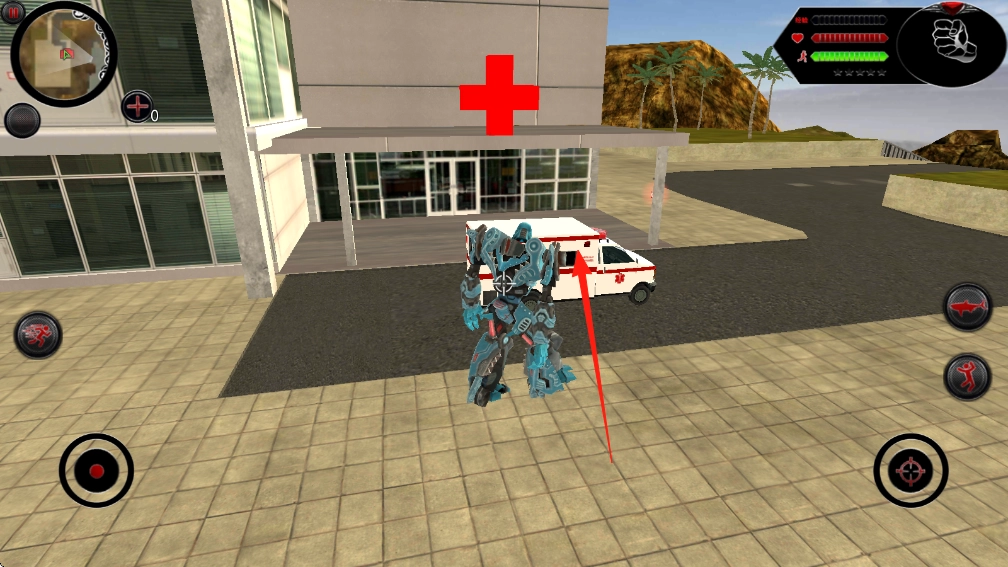 当你到达带有红十字标识的建筑前方时,按照箭头所指的提示方向行动,主动靠近救护车,这样就能触发诸如救援之类的任务环节,进而推动游戏剧情的发展,最终完成该关卡的挑战目标。
