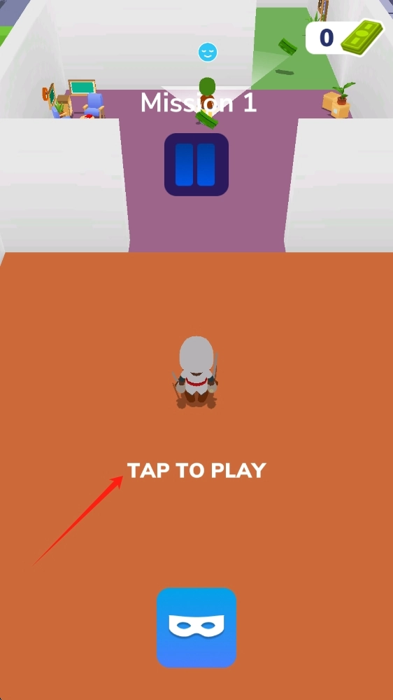 游戏开始时,点击“TAPTOPLAY”进入游戏,在关卡场景中开启潜行冒险,点击按钮即可进入游戏。