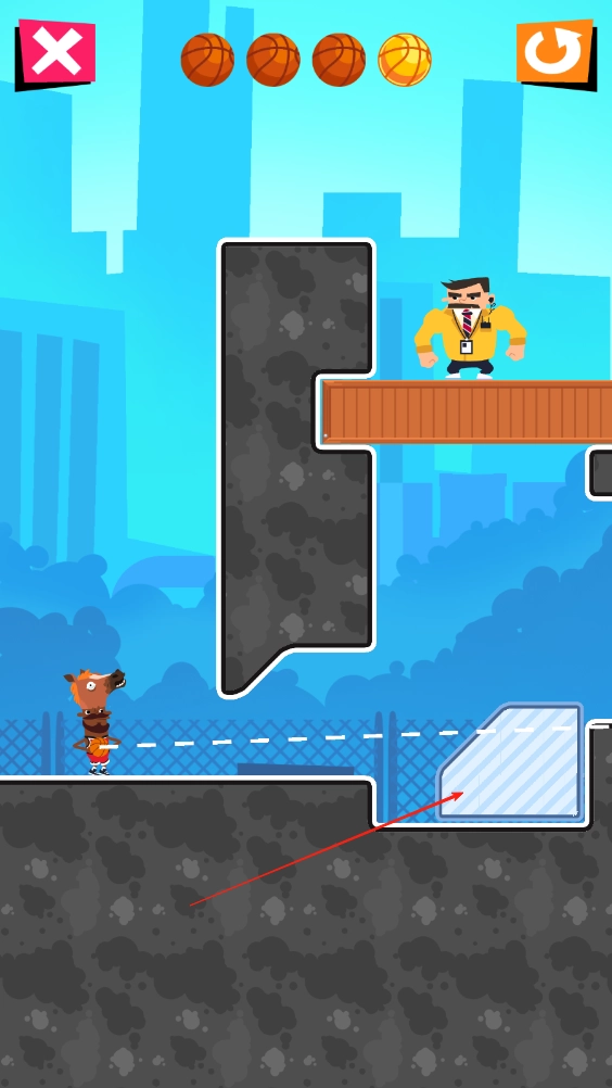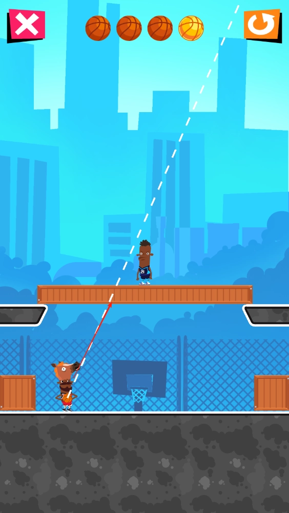 滑动屏幕来调整篮球的投掷角度和力度,松开手指就能把球投出去,击碎上方的木板,让敌人掉下来。