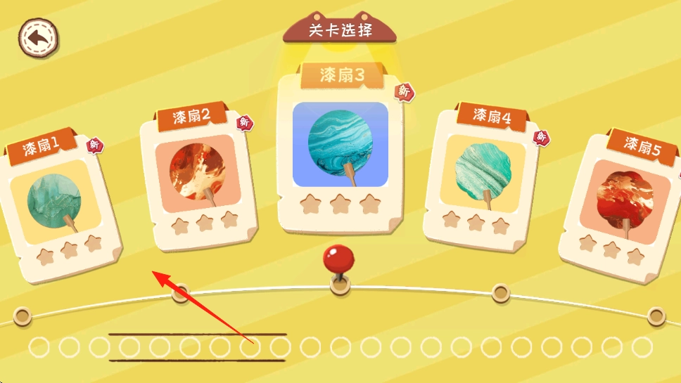 进入游戏主界面后,漆扇1至漆扇5的关卡列表清晰可见,每个关卡都对应着不同样式的漆扇制作任务。