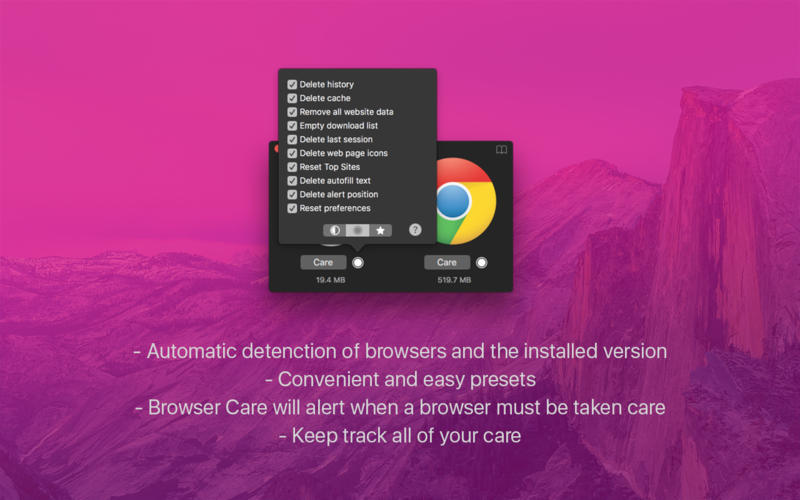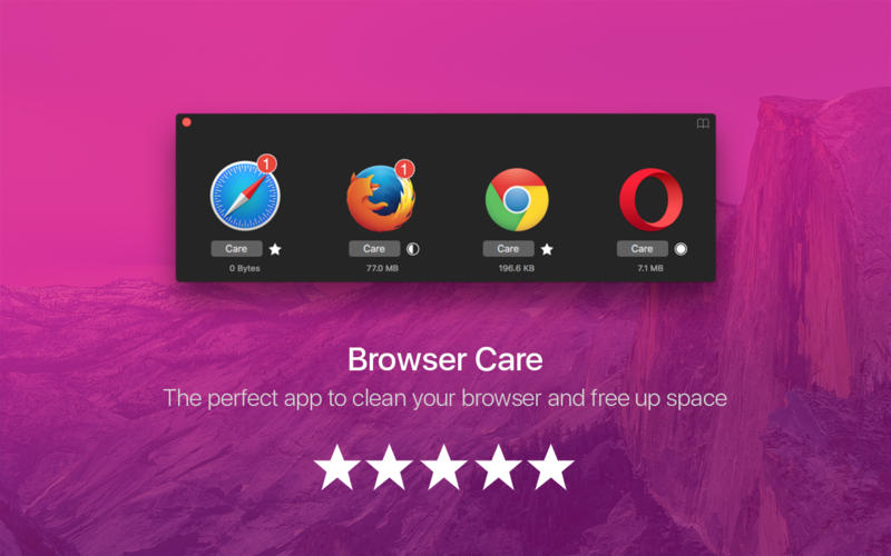 浏览器优化一切都只在按钮。让Browser Care来恢复您的Mac上的空间。