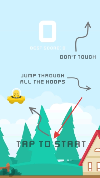 进入游戏后,按照【TAP TO START】的提示,点击屏幕使飞船跃起,穿过所有的圆环。