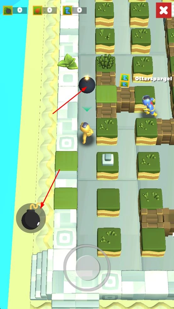 点击炸弹按钮来放置炸弹,借助爆炸的效果可以摧毁障碍物或者攻击对手,从而积累对战中的优势。