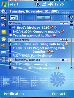 11.默认的PIM用户可以从日常弹出的时间窗口中直接创建新的约会和日程安排.此版本专为Windows Mobile 5.0 优化