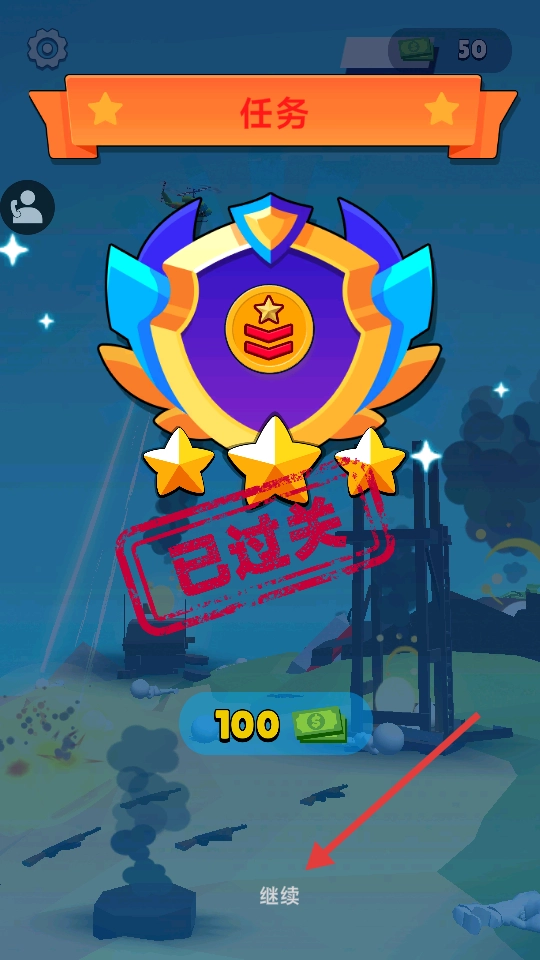 完成摧毁指定数量敌军单位的任务目标后,即可进入下一关卡。