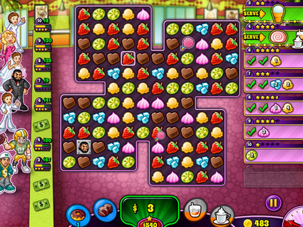 糖果店冲击和手机游戏糖果粉碎机很相似,不管是游戏界面还是游戏模式都差不多,但是PC试玩对比手机试玩还是有一定的差距,特效、音效在电脑上玩都好很多。