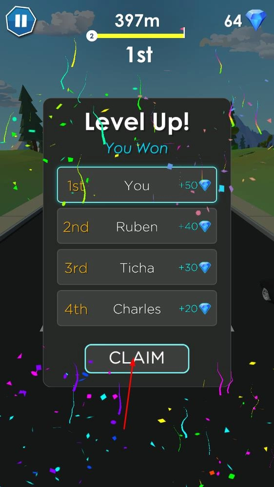 游戏进行到一半时,在错综复杂的赛道上巧妙变换车道以超越其他玩家,时刻关注路况的变动,通过积累分数来提高自己的名次,从而为解锁新的游戏内容储备足够的能力。