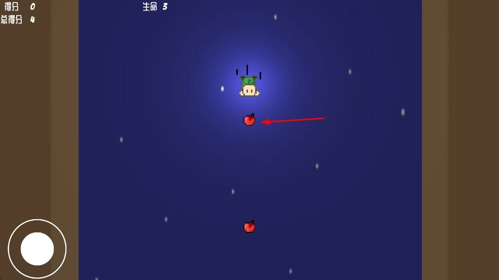 收集空中红苹果,提升得分与总得分。