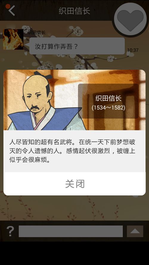 历史上的请回短信汉化版顾名思义,游戏方法就是回短信。幸运如后宫漫男主的你什么都不用做,一开始就能收到许多历史名人的短信——织田信长、圣德太子、宫本武藏,等等等等。这时会出现三种不同的回复,从中选择最恰当的一种就行了——从好到坏分别是粉心、蓝心和骷髅。粉心加最多好感度,骷髅不加。一样米养百样人,不同人有不同性格,只要摸透他们的性格,攻略起来就不是难事(其实还是很难),这证明心如海底针的不止女人。除此之外,等回信也是件难熬的事,因为时间是随机的,有时回你速度快得跟打鸡血一样,有时整天不回,这时你会发现石头门里的闪光指压师是多么可爱的存在。