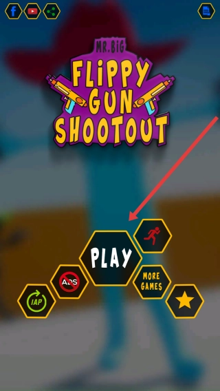 在Flippy-Gun-Shootout的主界面上,找到那个黑色的PLAY按钮并点击它,就能进入蓝红小人相互对战的射击关卡,正式开启这场对决挑战。