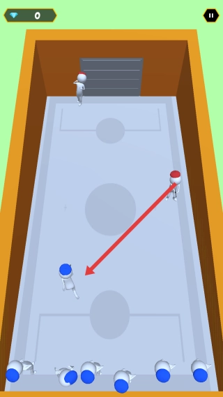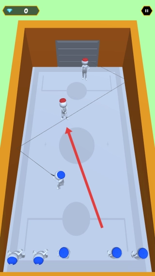 长按屏幕来操控蓝色小人移动,巧妙避开红色敌人的攻击,同时留意射击的机会,推动对战进程以争取胜利。