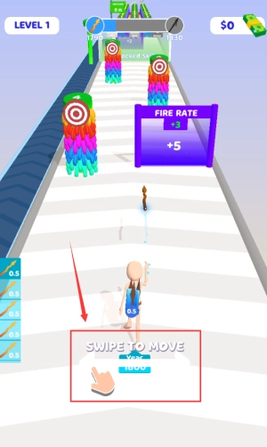 滑动“SWIPE TO MOVE”红框区域,即可控制角色的移动方向。
