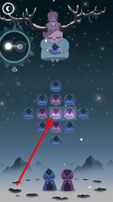 找到紫色小精灵方块的位置,通过点击并滑动的操作来移动它,让它参与消除。