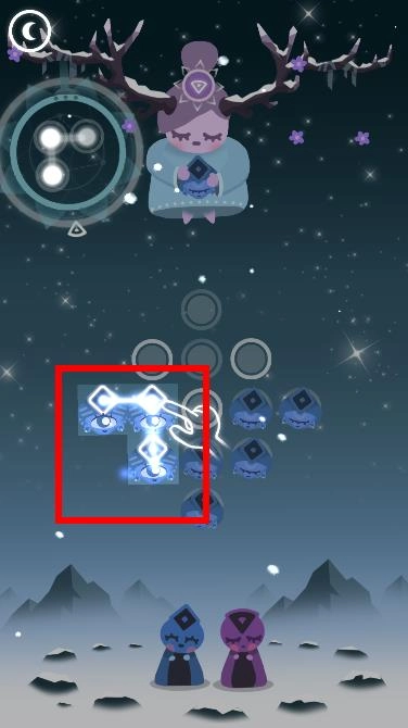 按照提示的轨迹,依次连接蓝色小精灵方块,让它们沿着指定路线被点亮,以此完成该阶段的解谜任务继续进行。