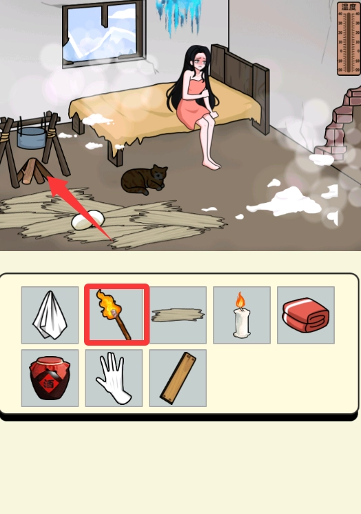 点击长按火把移动到柴那里。