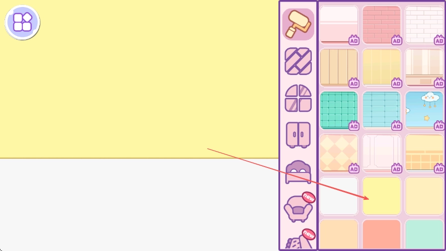 点击界面右侧的墙面图案选项,挑选心仪的墙面样式来布置房间。
