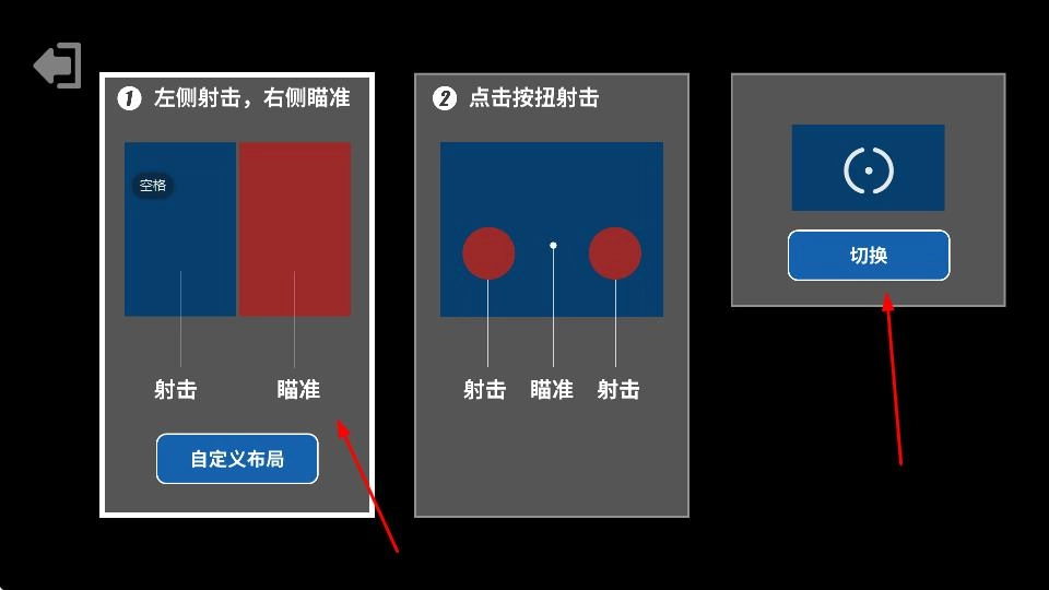 进入操作设置界面后,你可以选择左侧射击、右侧瞄准的布局,也能通过点击切换或自定义布局,来设置适合自己的射击与瞄准操作方式。