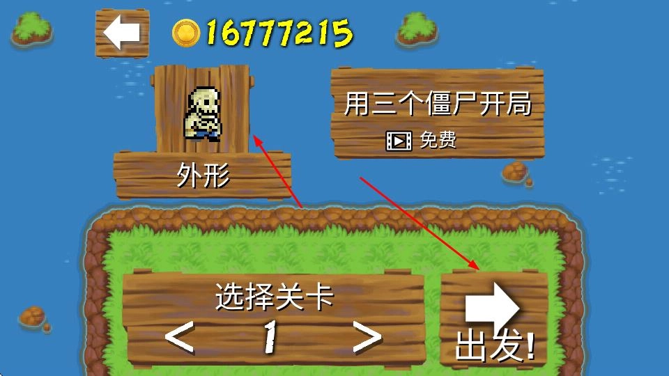 游戏开局可选择三个僵尸,点击出发按钮即可开启游戏,这是进入游戏的关键操作。